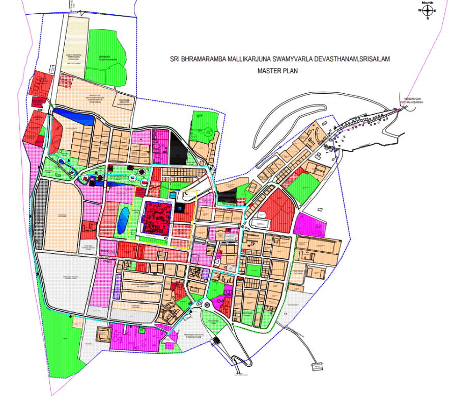 Preparation of Integrated Smart Infrastructure Master Plan and Land Use plans of Sri Bhramarambha Mallikarjuna Swamy Vari Devasthanam, Srisailam for 2051. Srisailam is known as a worship location for devotees of Lord Shiva which is situated in Nallamala Hills of Kurnool district, close to the banks of the River Krishna about 49.5 km from Dornala, 179.6 km from Kurnool and 213.2 km south of Hyderabad in the state of Andhra Pradesh. The Integrated Smart Infrastructure Master Plan and Land Use plans comprises of a collection of reports, statements, land use, and development proposals, with accompanying maps, diagrams, charts, and other descriptive matter that shows the recommendations for the desirable development of the town.